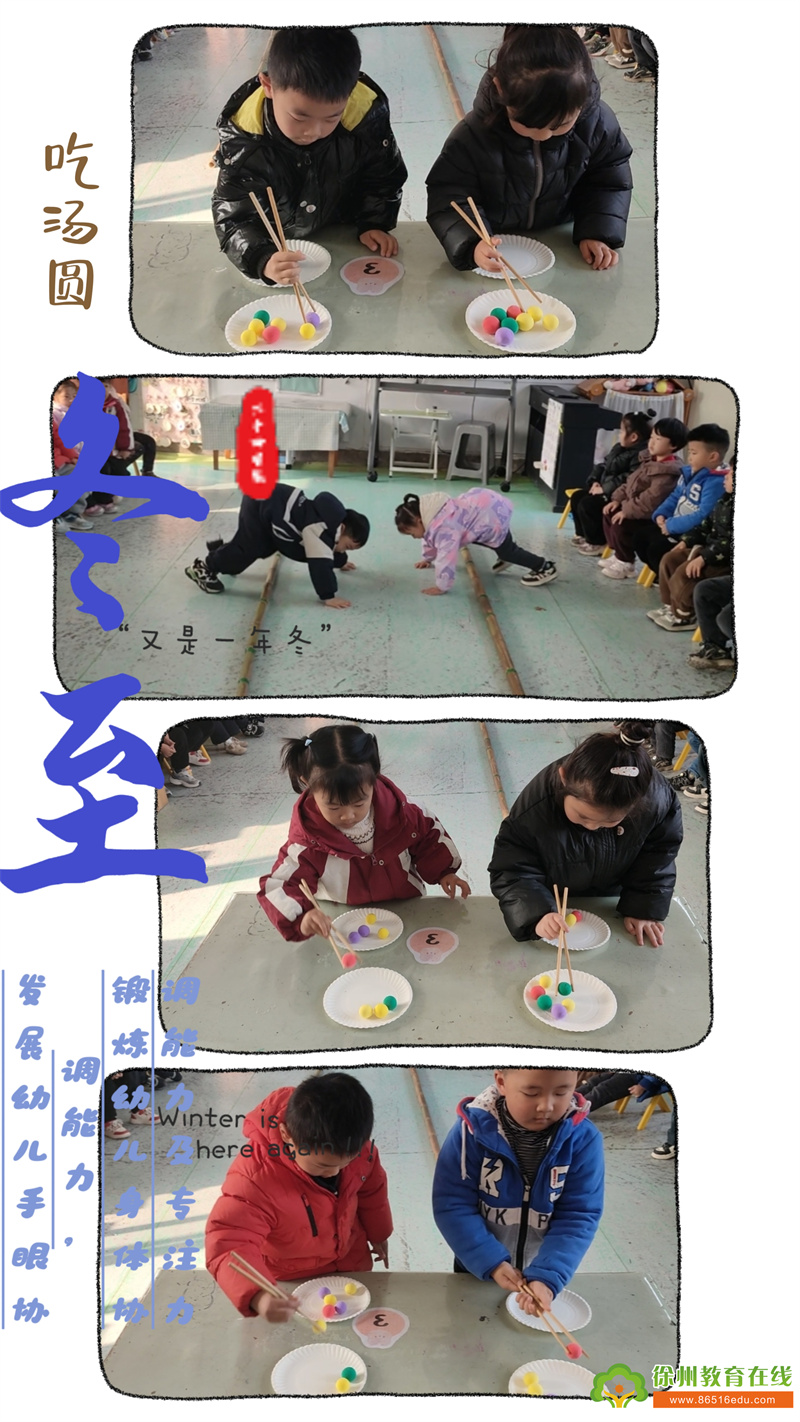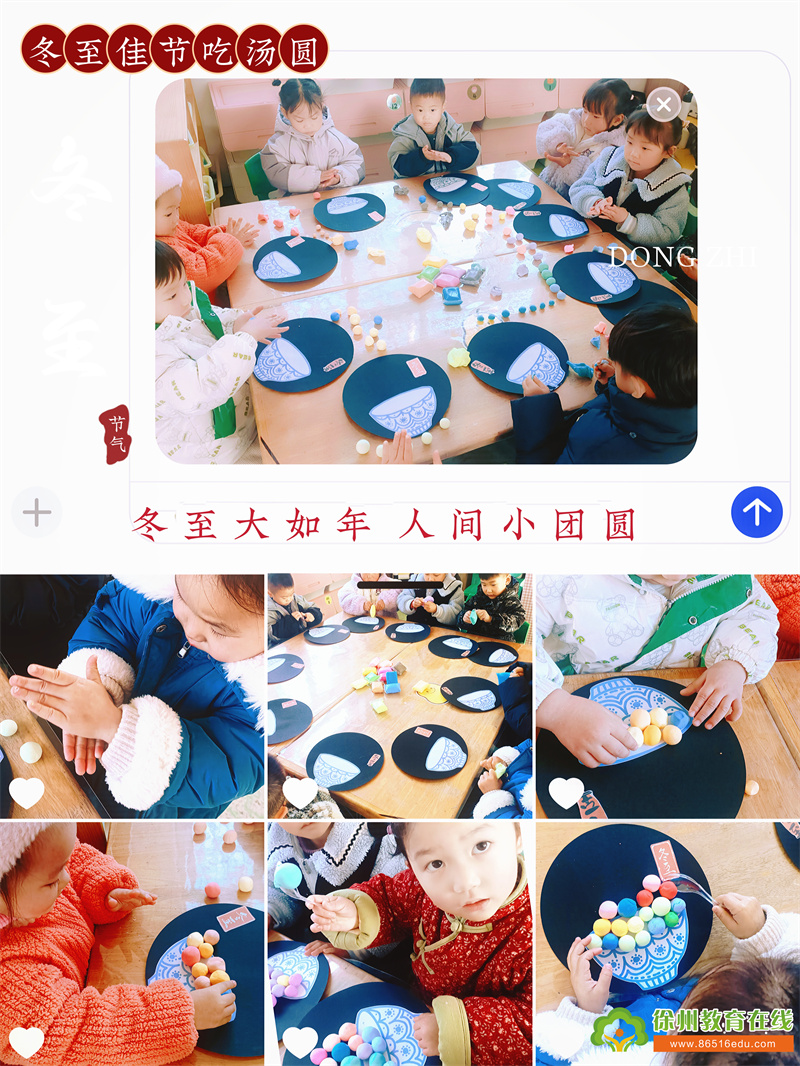 苏公网安备 32031102000486号随着冬日渐深,我们迎来了二十四节气中的重要节点——冬至。冬至不仅是一年中白昼最短、黑夜最长的一天,也标志着“数九寒天”的开始。为了让孩子们感受冬至的独特氛围与人文内涵,贾汪区富强幼儿园开展了丰富有趣的冬至主题活动。