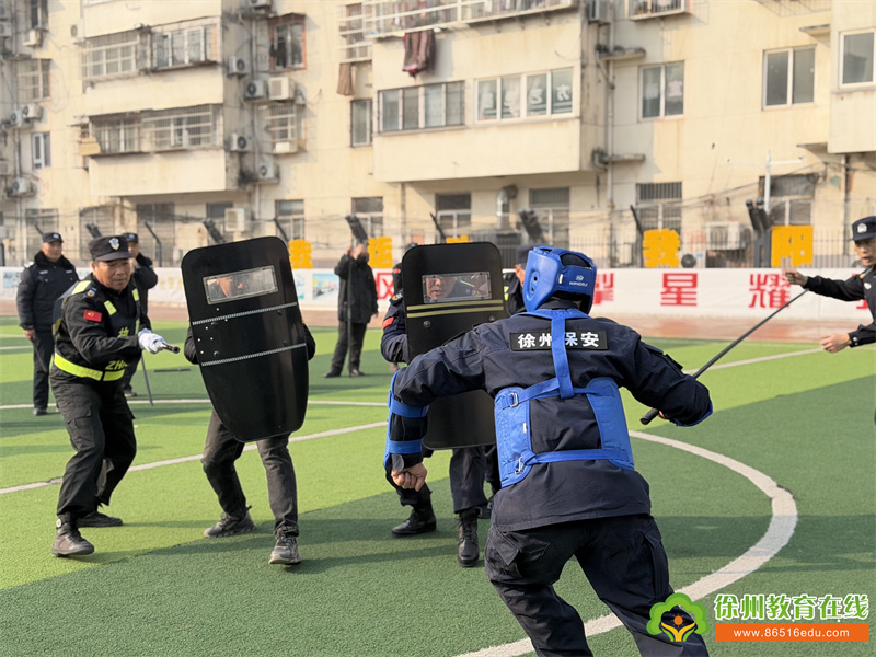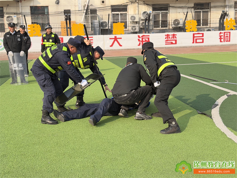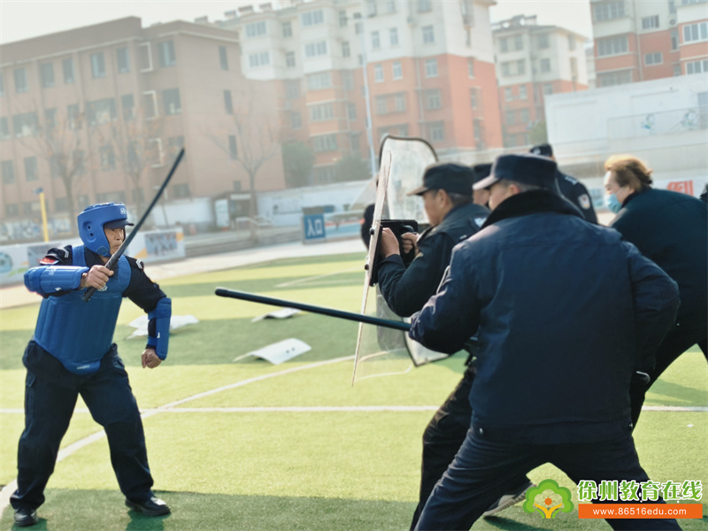 随后,集团校分管安全工作的荣夫伟主任带领全体安保人员前往学校操场,开启实战化培训环节。