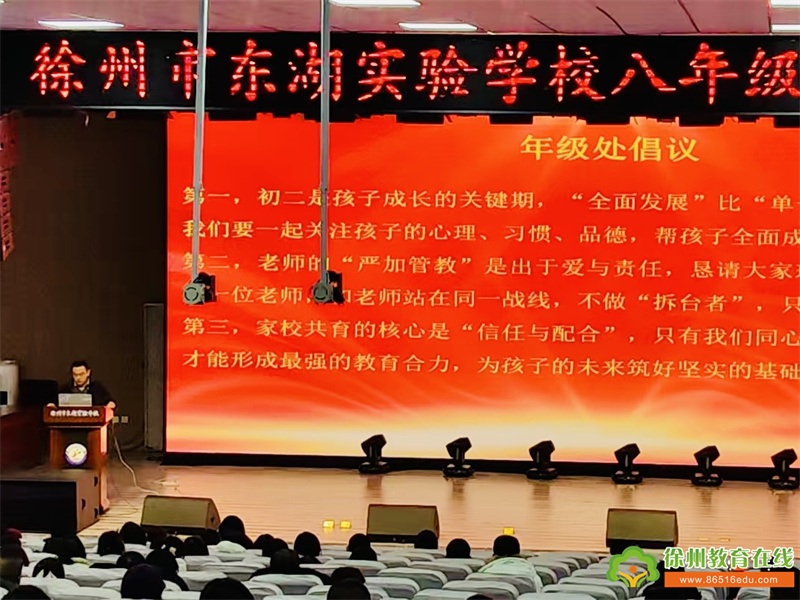 苏公网安备 32031102000486号为搭建家校沟通的坚实桥梁,凝聚教育合力,助力初中生在不同成长阶段稳步前行,徐州市东湖实验学校于12月10日至12日分年级、分班级有序召开了初中七八九三个年级家长会。本次活动以“精准对接需求,共话成长之道”为核心,通过年级层面的宏观引领与班级层面的个性化交流,让家长们全面了解孩子的校园生活与成长状态,为家校协同育人奠定了坚实基础。
