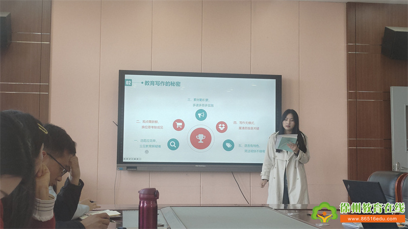 接着,杨海萍老师为我们分享的是《改变,从写作开始》这本书。杨老师主要从“教育写作的误区和实用技巧”、“教育教学叙事叙事”进行分享,告诉我们写作时要本着“我手写我心”的意识,关注当下的教育教学实践。最后,杨老师通过阅读,还认为我们在写作中要努力积累素材,做生活的有心人,随时记录下教育教学中的灵感与故事,多思考、多研究,为我们的写作发展提供帮助。