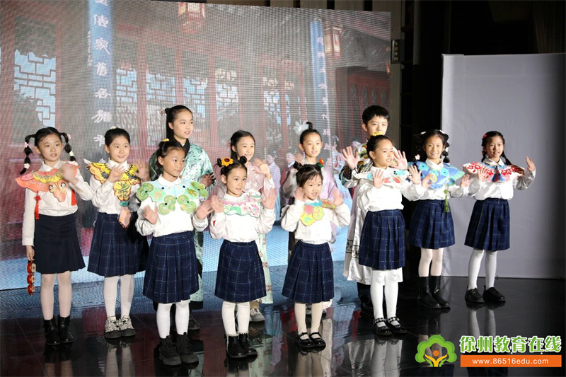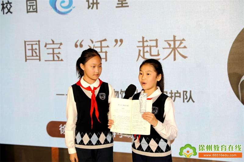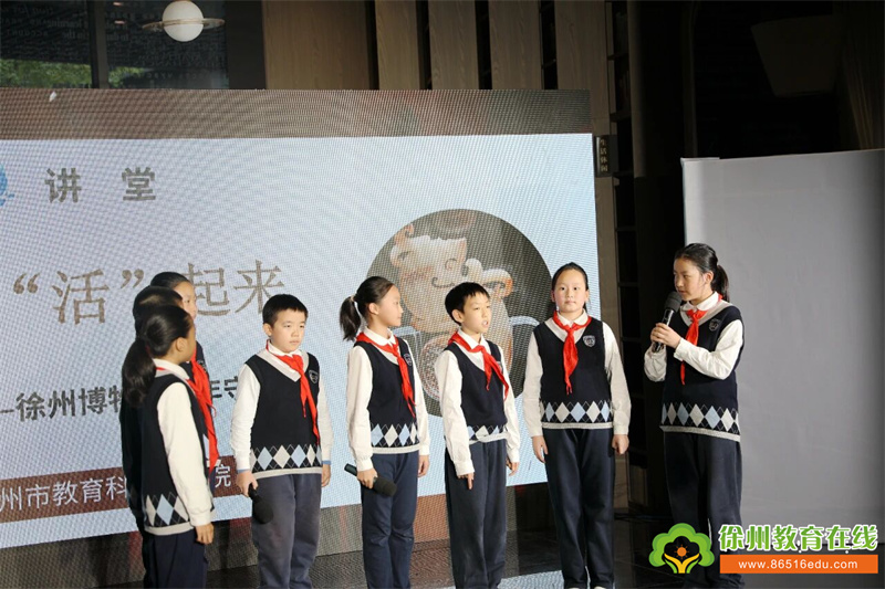 11月7日,第二期“校园E讲堂”举行,徐州市师范学校第一附属小学的师生进行了《国宝“活起来”——徐州博物馆少年守护队》项目展示。同学们作为国宝守护人,带领大家沉浸式了解每件文物背后的故事。在创意制作和汉服展示环节,玉卮变成了小夜灯,玉龙佩制成了书签,云肩上既能绘制羊肉串,还能和3D打印相结合,光影魔术秀、汉服秀妙趣横生,收获观摩教师和同学们的点赞。