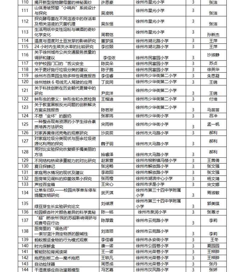 第二十一届徐州市青少年科技创新大赛评审结果公示