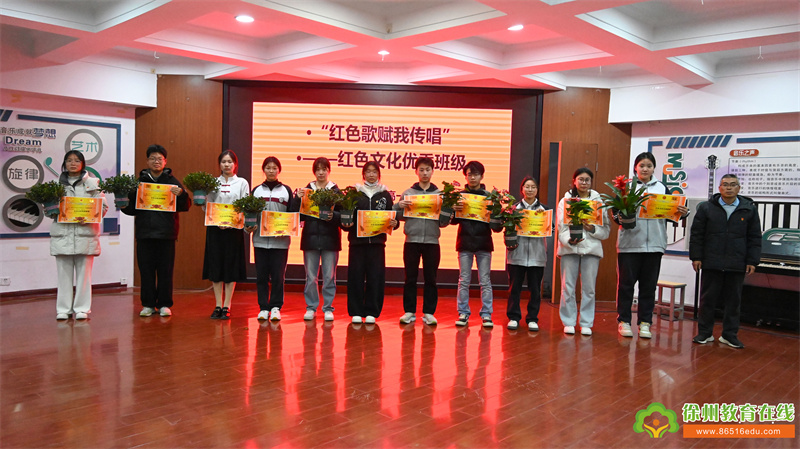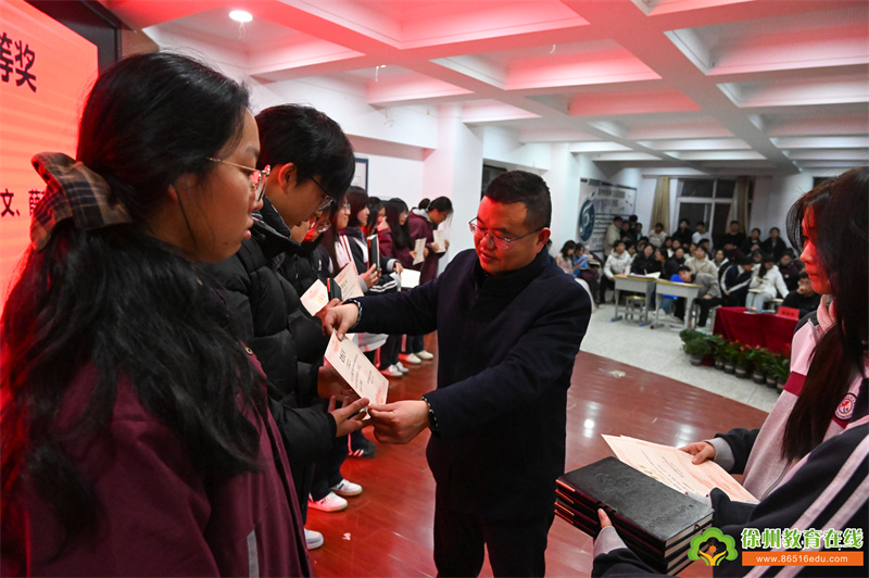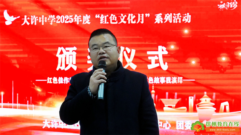 颁奖仪式上,大许中学校领导和老师为“红色佳作我展示”、“红色歌赋我传唱”、“红色故事我演绎”系列活动中获奖班级和个人颁发荣誉证书与奖品,闪光灯记录下同学们收获荣誉的喜悦瞬间,也让红色精神的种子在榜样引领中生根发芽。