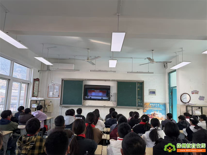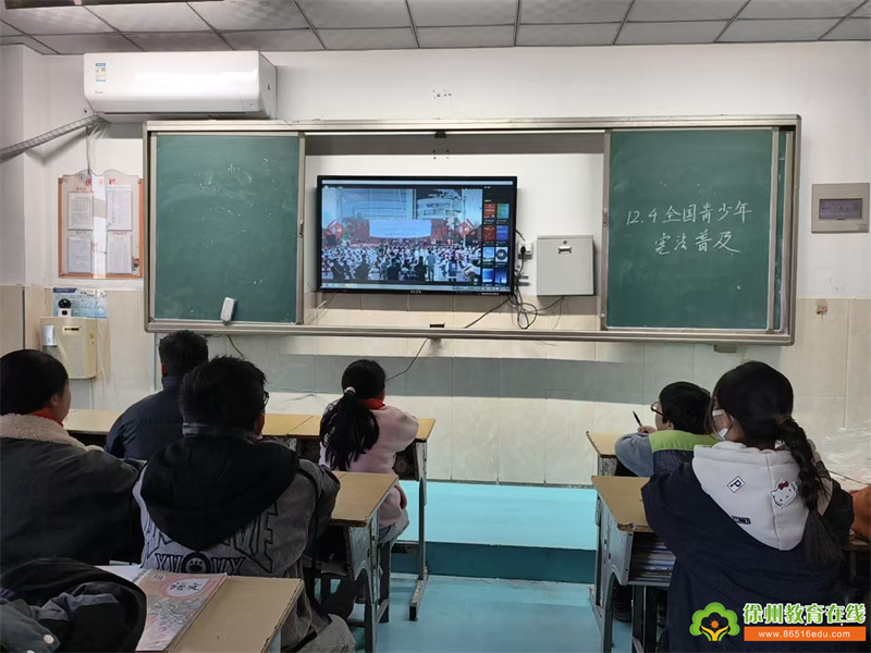 上午10时,全校师生分班级在教室通过多媒体设备集中观看宪法学习周“宪法晨读”活动直播。