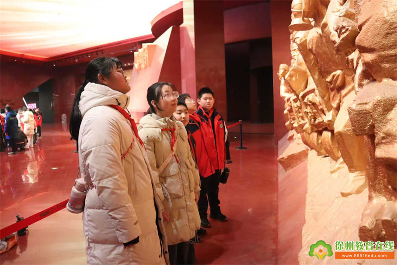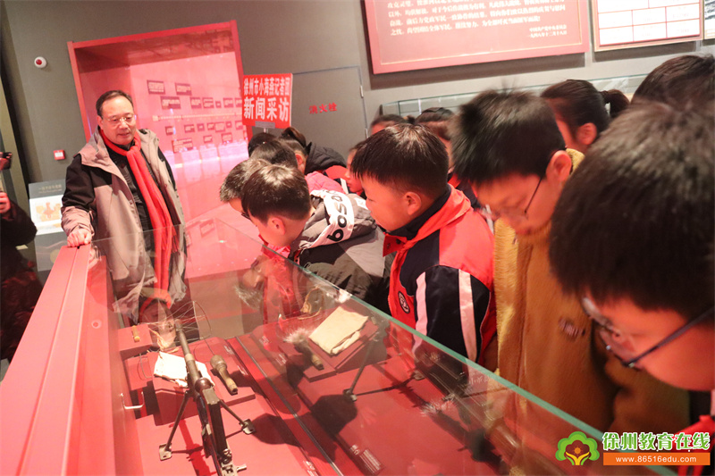 走进淮海战役纪念馆,在前言部分,毛主席题写的“人们的胜利”画面前王乔研究员告诉大家,淮海战役解放军60万大军与国民党军80万人马展开战略决战。以少胜多,以弱胜强,在世界战争史上都是奇迹。毛主席说淮海战役的胜利是人民的胜利,陈毅元帅曾深情地说,淮海战役是人民群众用小车推出来的。小记者们纷纷表示:“通过今天缅怀先烈,追忆红色经典活动,让我们懂得幸福生活来之不易,是革命先烈抛头颅、洒热血,用生命换来的。我们一定要努力学习,锐意进取,铭记历史,珍惜当下,传承红色经典,争做时代新人。