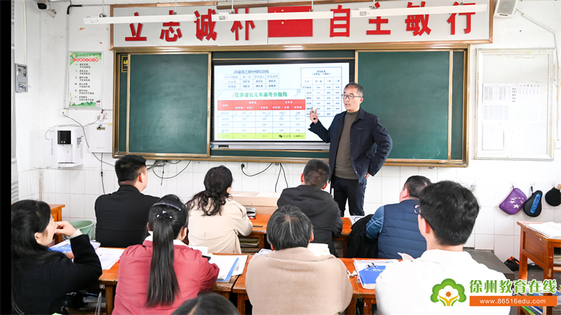 接下来,张强主任全面通报摸底考试整体情况,从学科均衡发展、优势短板分布、学情动态变化等维度进行深度剖析,用详实数据直观呈现学生阶段性学习成果与待改进方向。张主任对全体学生在本次徐州市统一测试期中考试中取得的优异成绩作出高度评价,希望通过摸底考试,全体学生要找出复习漏洞,查漏补缺,以便补救。张主任勉励全体同学,摸底考试的意义是能锤炼同学们的考试心理和应试技巧,并能正确评价自己。