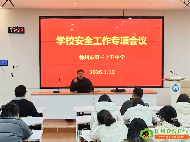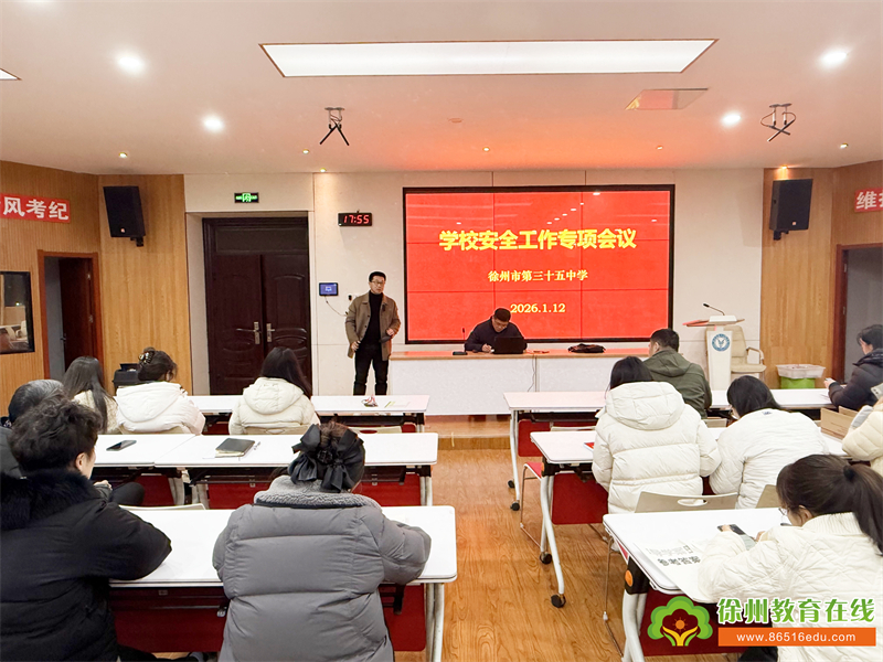 苏公网安备 32031102000486号为切实压紧校园安全责任,防范化解各类安全风险,2026年1月12日下午,徐州市第三十五中学召开安全专项工作会议。学校领导班子、各部门负责人及部门工作人员、年级主任及全体班主任参会,会议由校长杨洋主持。