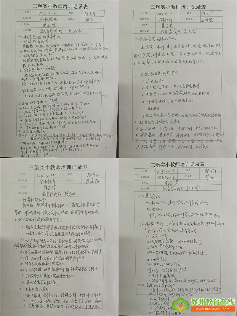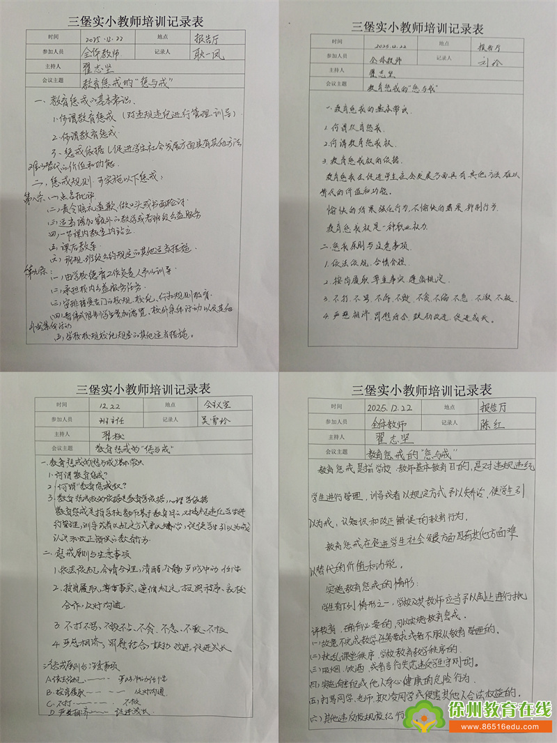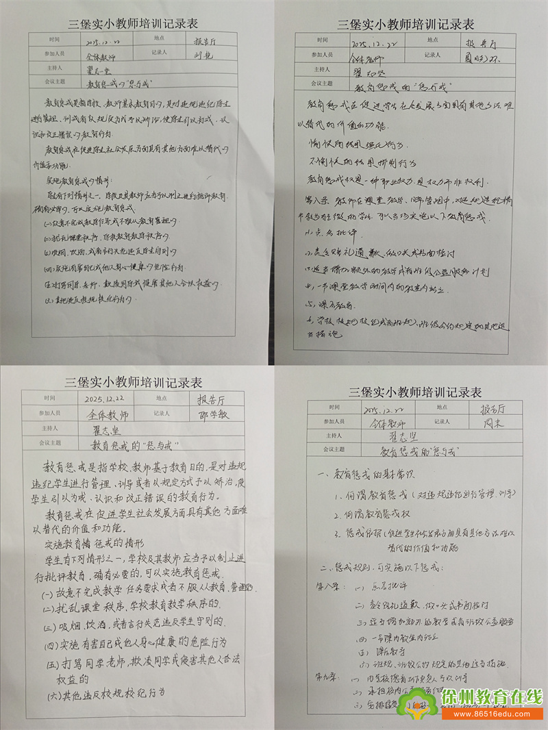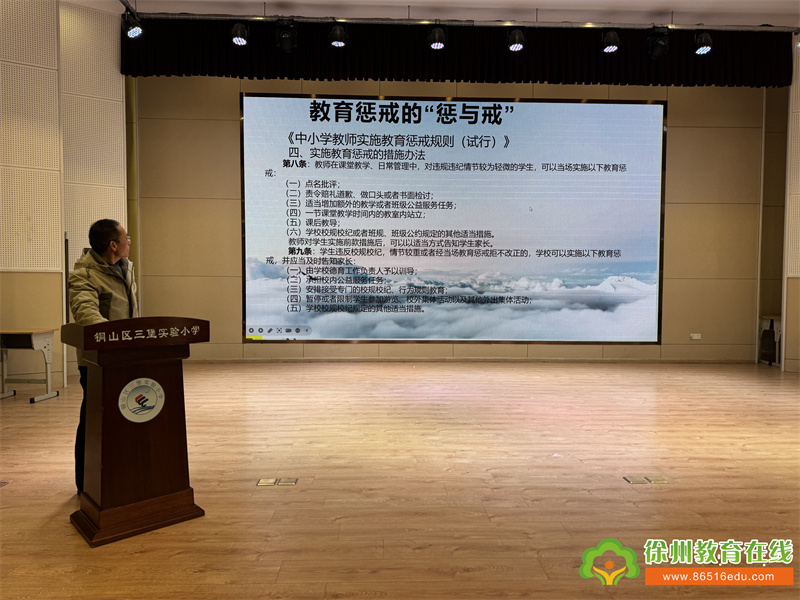 苏公网安备 32031102000486号为全面落实立德树人根本任务,规范教师教育惩戒行为,保障学生合法权益,近日,三堡实验小学组织全体教师开展《中小学教育惩戒规则(试行)》专题学习活动,通过政策解读、案例分析和家校共育等多维度推进规则落地实施。