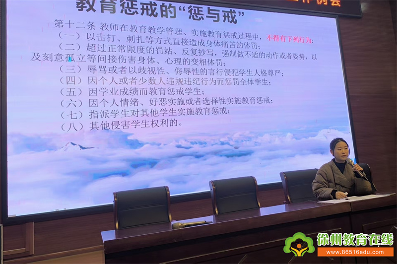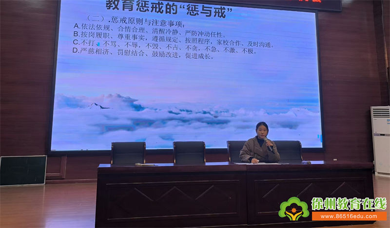 苏公网安备 32031102000486号为落实立德树人根本任务,破解教师 “不敢管、不会管” 的育人困境,明确教育惩戒的边界与规范,构建和谐家校共育生态,12月29日,铜山区大彭实验小学举办 “规范教育惩戒,护航学生成长” 专题培训活动。全体教师齐聚报告厅,共同聆听教育惩戒 “干货” 分享,解码教育惩戒的 “惩与戒” 之道。