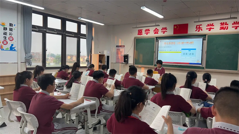 学校立足“专家治校、特色立校、质量强校、文化塑校”的办学方略,秉承“学生为主体、教师为主导、问题为主轴、思维为主线、练习为主攻”的教学指导思想。采用“小组合作+限时过关、以导代教+合作探究”的教学方式,提升学生的思考能力和学习能力。