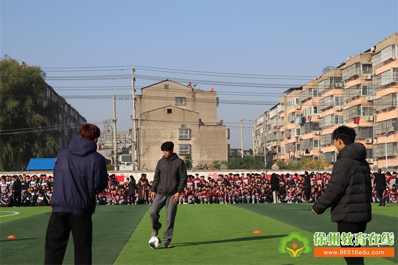 苏公网安备 32031102000486号2025年11月10日上午,徐州市铜山区郑集中心中学迎来了“国培计划”示范项目(校园足球)培训班跟岗实践活动,来自全国50余名体育骨干教师和四名“苏超”徐州队友(江苏师大的学生)齐聚校园,共同观摩交流“一校一品”阳光体育建设成果。