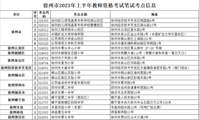 苏公网安备 32031102000486号徐州市2023年上半年教师资格考试笔试考点地址