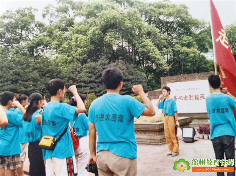 我们顶着烈日酷暑,冒着狂风暴雨,雄纠纠,气昂昂,一路欢笑一路歌。在盐城新四军军部重建旧址看到新四军在大江南北英勇抗战的身影;走进沙家浜的芦苇荡和春来茶馆找到了“十八棵青松”、“阿庆嫂”和“郭建光”;在茫茫无际的白洋淀乘上了雁翎队的小木船,钻进了让小鬼子胆战心惊的冉庄地道;在狼牙山顶峰,向气壮山河的五壮士献上我们亲手用野花编成的花圈;在石家庄,向国际共产主义战士白求恩陵墓默拜;在西柏坡瞻仰党的老一辈领导人的风范;手扶芦沟桥石狮缅怀抗战业绩;面对南京大屠杀累累白骨发出“爱我中华,不忘国耻”的誓言。