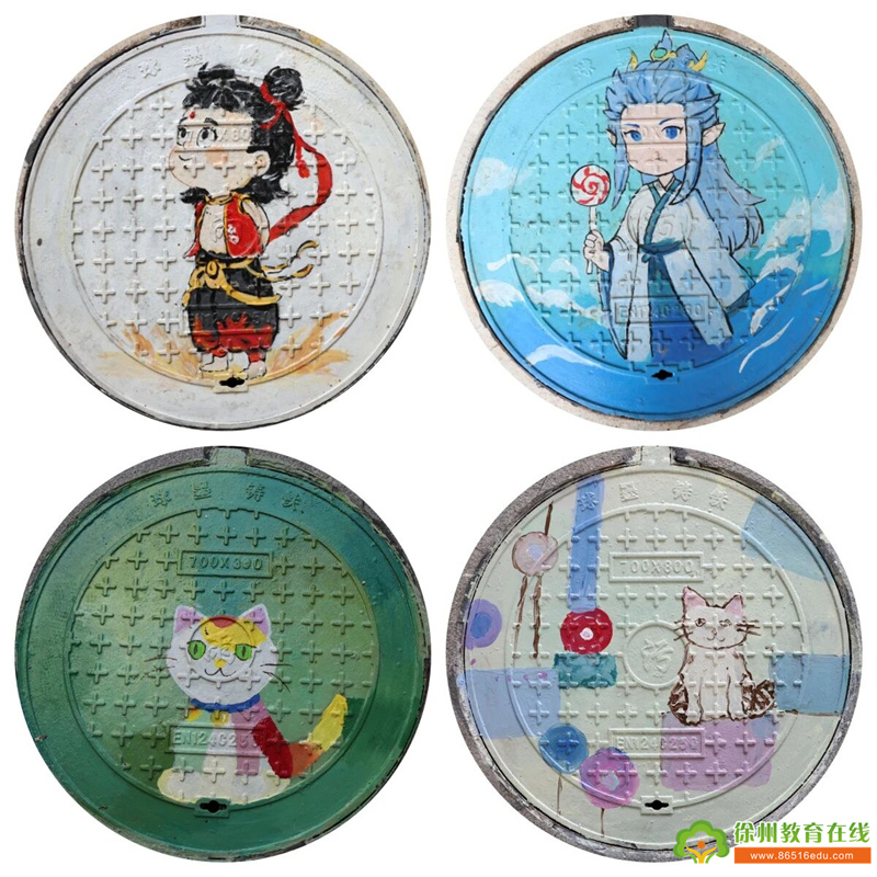 除了浓缩校史的主题井盖,师生们还将艺术创意延伸到校园的其他角落,赋予井盖更多元的文化内涵。在勾勒学校发展史主题井盖的同时,师生们还将创意延伸到校园的各个角落。一个个原本单调的井盖,有的变身成《哪吒之魔童降世》中帅气灵动的哪吒与敖丙,尽显少年意气;有的绘上春日里含苞的花朵与灵动的飞鸟,满溢生机与活力。这些充满童趣与美感的作品,与校史主题井盖相映成趣,不仅为校园环境注入了鲜活气息,更让每一处角落都成为可观赏、可触摸的文化景观。