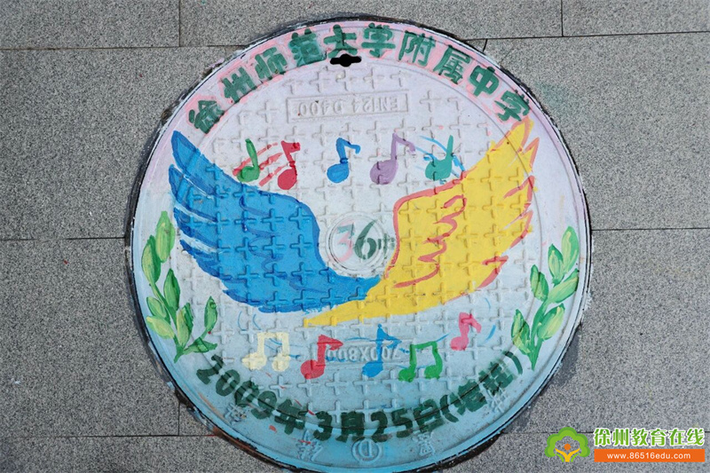 从1975年翟山脚下的建校初心,到省级重点高中、国家级示范性普通高中、四星级高中的荣誉进阶,再到移交地方、正式更名为徐州市第三十六中学、增挂师大附中校名的跨越之举,九个关键历史节点化为一幅幅生动的图案,在原本朴素的井盖上绽放光彩。