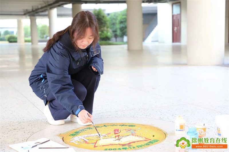 苏公网安备 32031102000486号2025年11月上旬,为庆祝徐州市第三十六中学建校五十周年,校园里一道道独特的风景线正在悄然形成:艺术教育中心的老师们带领学生利用课余时间围聚在井盖旁,手持画笔、蘸取色彩,将学校半个世纪的发展足迹细细勾勒。