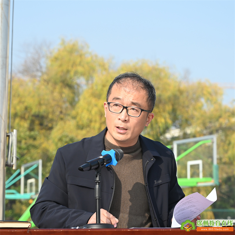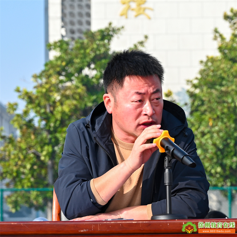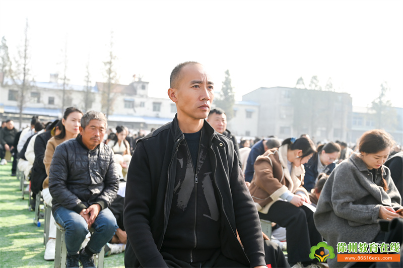 会议分为两部分。第一部分在操场举行。会上,高三年级部主任张强介绍开学至今全体师生们的辛勤付出,并向家长们汇报我校在本次徐州市统一测试摸底考试中取得的优异成绩。