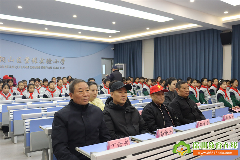 徐州市关工委副主任王晓燕,铜山区关工委主任孟宪康、小海燕记者团总部主任陈晓,铜山区教育局副局长孙锋、关工委常务副主任朱从德、秘书长武芳立,棠张镇组织委员陈晓洁,关工委常务副主任孙守华,中心校校长潘慈奎,小海燕记者团总部指导老师丁修武,三所分团学校的负责人及辅导老师,棠张实验小学分团130多名小记者、辅导老师参加了授旗仪式。授旗仪式由铜山区关工委副主任宗建主持。