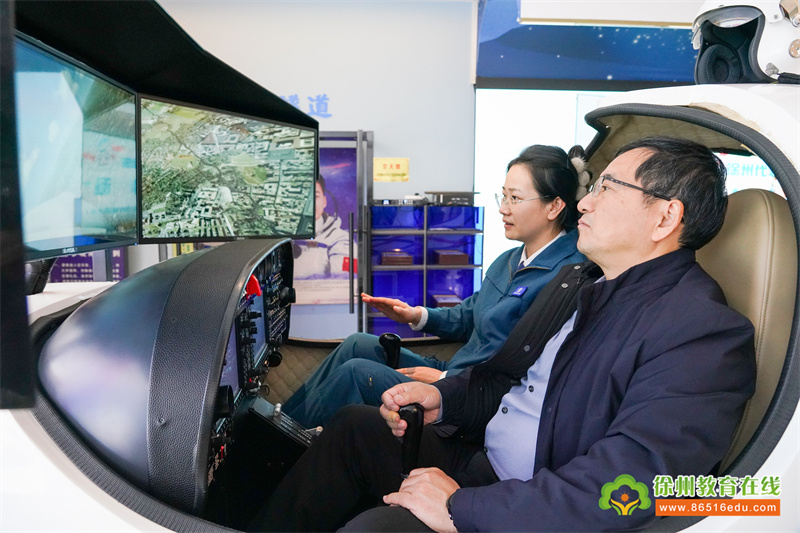 在于水莲总指挥的引导与讲解下,张农校长一行首先参观了基地空天馆,深入了解航空航天发展历程与训练设施。学院领导饶有兴致地分别体验了军航、民航、通用航空模拟机的飞行操作,亲身感受了模拟飞行的技术魅力与训练实效。参观过程中,基地方重点介绍了徐州市航空飞行科目的升学通道与系统化培养计划、模拟飞行项目及其赛事体系、基地师资(教官)队伍建设情况,并分享了两位优秀学员成功考取北京航空航天大学、南京航空航天大学的典型案例。与会人员还现场观摩了基地教官精湛的模拟飞行演示。