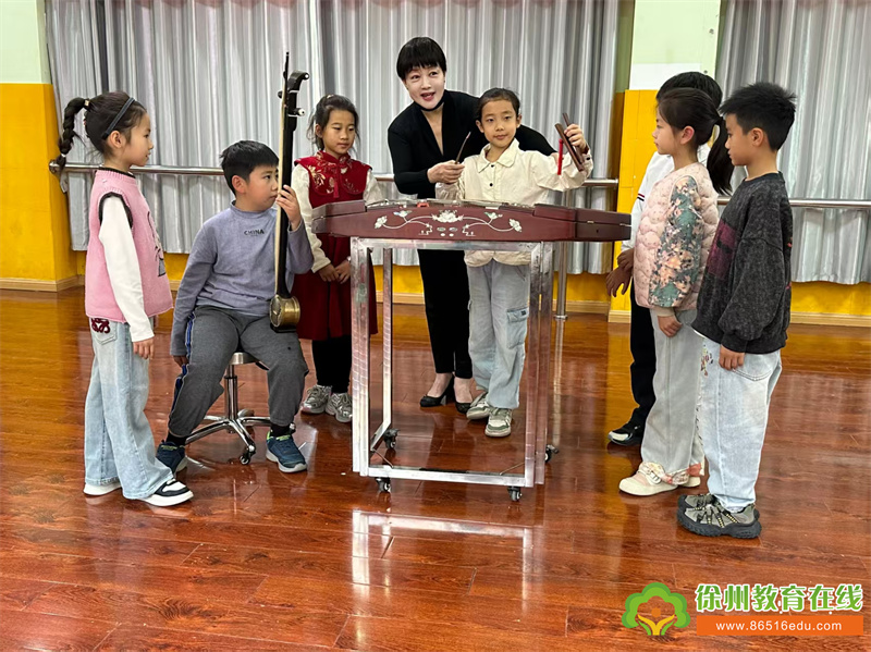 作为学校美育特色标杆,自2018年徐州琴书项目落户以来,学校始终坚守“传承非遗文脉,培育曲艺新苗”初心。学校构建“全员普及课程+琴书艺术团”双路径模式,聘请国家级传承人张巧玲担任艺术顾问,组建“非遗传承人+专职音乐教师”双师团队,配备专用排练厅与全套乐器,筑牢软硬件根基。目前,徐州琴书已纳入学校常态音乐课程,通过校本教材实现全校7000余名学生全覆盖,让本土非遗浸润成长之路。
